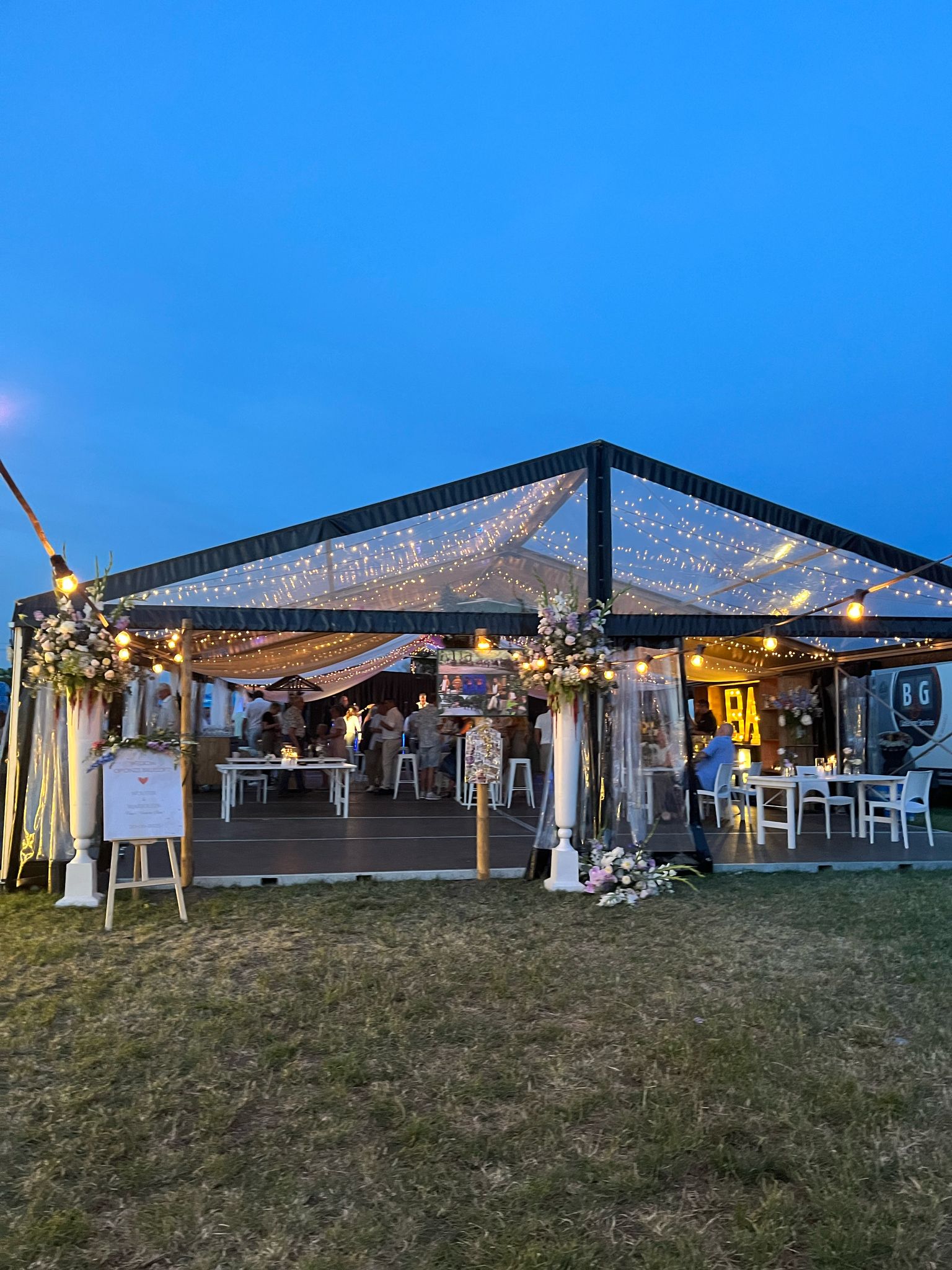 Een feest is pas een feest met de juiste sfeerverlichting, de fairy light geeft in de transparante aluhale de sfeer alsof je direct onder de sterrenhemel staat.